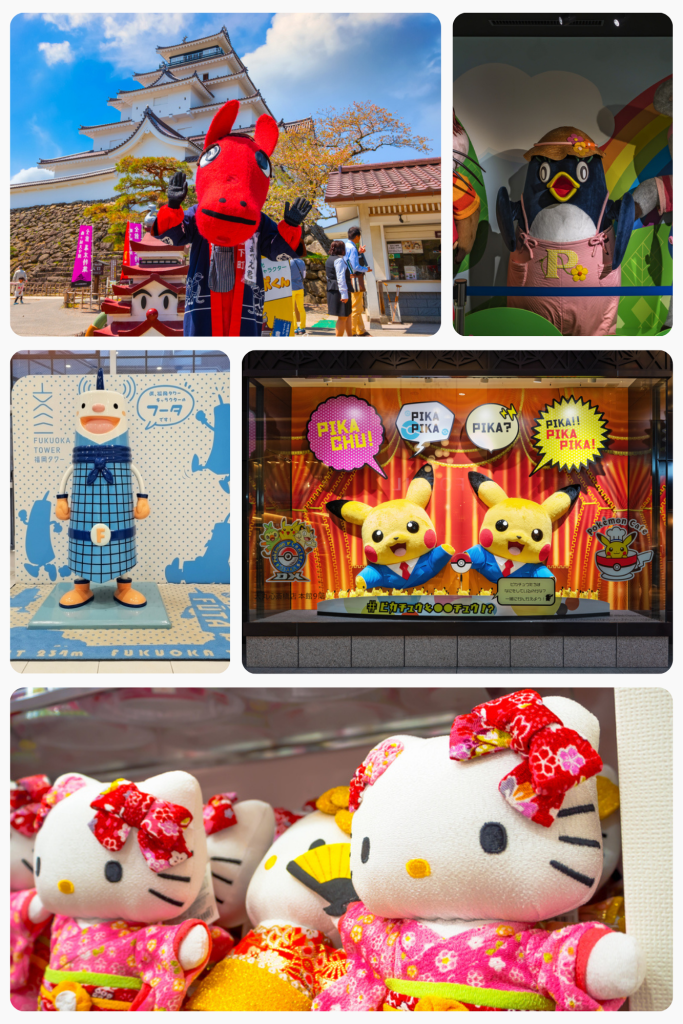 Dans tout l’archipel, de nombreuses villes et préfectures possèdent leur propre mascotte officielle, appelée yuru-chara. Ces personnages, souvent inspirés de l’histoire locale, de spécialités régionales ou de paysages emblématiques, sont conçus pour être attachants, simples et facilement reconnaissables. Leur apparence volontairement maladroite ou enfantine contribue à créer un lien affectif avec le public.