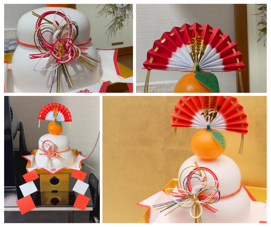 La composition du kagami mochi n’est jamais laissée au hasard. Les deux galettes symbolisent souvent l’année écoulée et celle qui commence, ou encore le yin et le yang, l’équilibre fondamental du monde. L’orange posée au sommet, appelée daidai, signifie littéralement « de génération en génération », exprimant un vœu de prospérité et de continuité familiale. Selon les régions, on y ajoute parfois une feuille de fougère, une algue kombu ou des bandes de papier rituel, renforçant encore sa dimension protectrice.