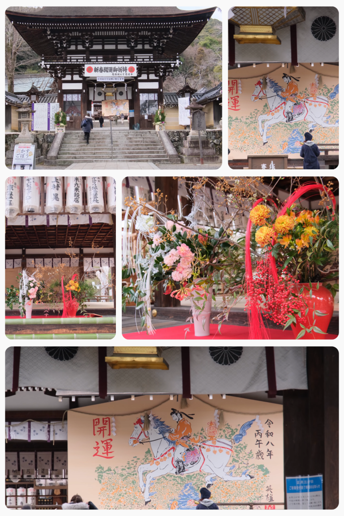 En ce début janvier, période clé du calendrier shinto avec les premières visites de l’année, le visiteur est accueilli par une peinture installée à l’entrée du sanctuaire pour célébrer l’année du cheval. L’animal, puissant et élégant, y est représenté avec dynamisme, symbole d’énergie, de mouvement et de liberté. Dans la tradition japonaise, le cheval est associé à la vitalité, à la réussite et à la capacité d’avancer avec détermination. Cette œuvre éphémère, visible uniquement en début d’année, donne le ton : Matsuo Taisha est un lieu vivant, profondément ancré dans le cycle du temps.
