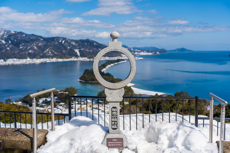 Amanohashidate en hiver est une expérience sensorielle. La neige, rare mais précieuse dans cette région côtière, transforme le site en un tableau vivant où nature et sérénité se rencontrent. Loin de l’effervescence des grandes villes, ce pont céleste rappelle que le Japon hivernal sait se faire discret, contemplatif et profondément apaisant.