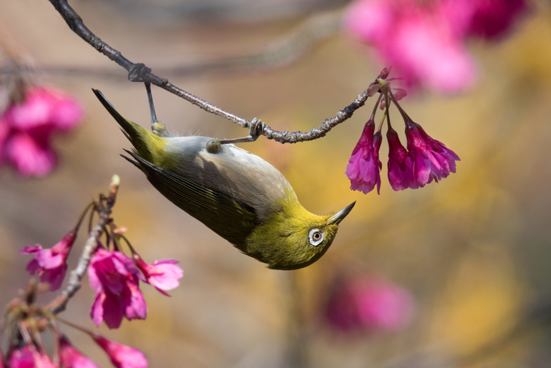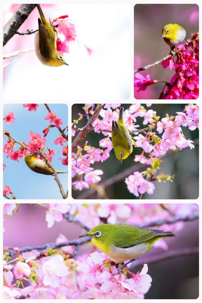 Chaque printemps au Japon, lorsque les sakura parent les parcs et les avenues de leurs délicates nuances roses, un petit oiseau attire les regards autant que les fleurs elles-mêmes. Le Zosterops japonicus, devient alors un véritable symbole vivant de la saison. Léger et vif, il accompagne la floraison des cerisiers comme un compagnon naturel, ajoutant du mouvement et de la vie à ce spectacle déjà poétique.