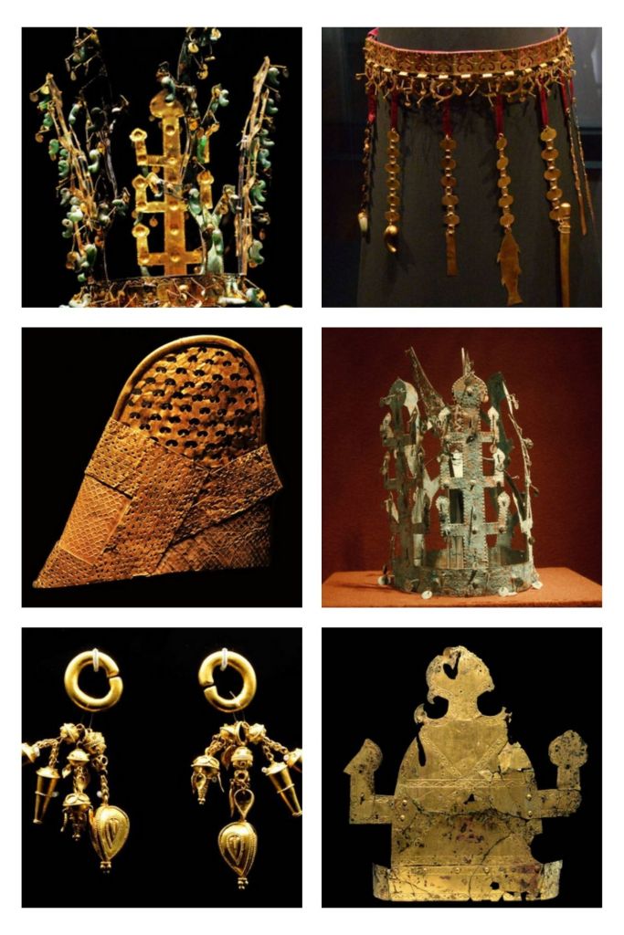 Fondé en 57 av. J.-C., le royaume de Silla s’est progressivement imposé comme l’une des grandes puissances des Trois Royaumes de la péninsule coréenne, aux côtés de Goguryeo et Baekje. Grâce à des alliances stratégiques, notamment avec la Chine des Tang, Silla parvient au VIIe siècle à unifier la majeure partie de la péninsule. Cette période, dite de Silla unifié, marque un apogée politique, culturel et artistique. Le bouddhisme, adopté comme religion d’État, inspire une production artistique raffinée, dont les célèbres couronnes en or, symboles de pouvoir et de prestige royal, constituent l’un des témoignages les plus éclatants.