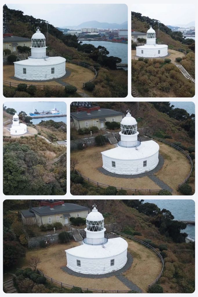 Perché à l’extrémité nord de l’île de Kyushu, dans l’arrondissement de Moji à Kitakyushu, le phare de Hesaki domine la mer intérieure de Seto et ses couloirs maritimes animés. Depuis le sommet de sa tour cylindrique, accessible par un étroit escalier en colimaçon, le regard embrasse l’horizon. À travers les vitres de la lanterne, les silhouettes des navires se détachent nettement, glissant entre les îles et les courants de cette mer stratégique du sud-ouest du Japon.