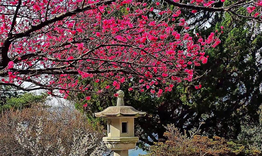 Les pruniers figurent parmi les premiers arbres à fleurir, souvent dès la fin de l’hiver. Leur éclosion précoce, alors que les températures restent fraîches, est traditionnellement associée à l’idée de renouveau et de persévérance. À Geumdunsa, ces arbres anciens s’inscrivent dans un environnement préservé, où l’architecture du temple, avec ses toits incurvés et ses façades en bois, contraste avec la délicatesse des pétales.