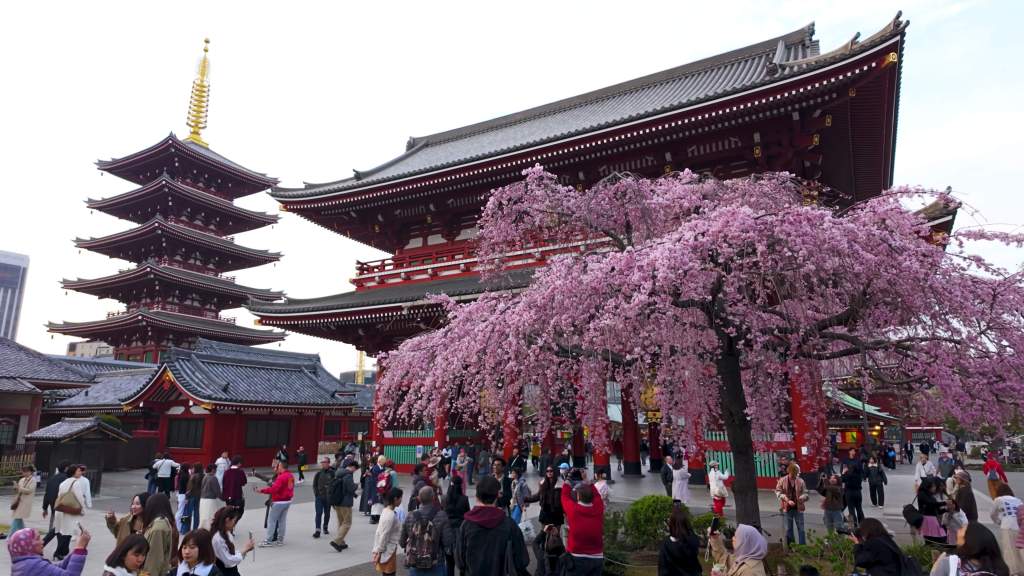 À la tombée du jour, les lanternes s’illuminent doucement, tandis que les pétales tombent comme une pluie silencieuse. Le contraste entre l’architecture ancestrale et la nature en pleine floraison crée un spectacle d’une rare harmonie. Asakusa devient alors un lieu de mémoire, de spiritualité et d’émotion.