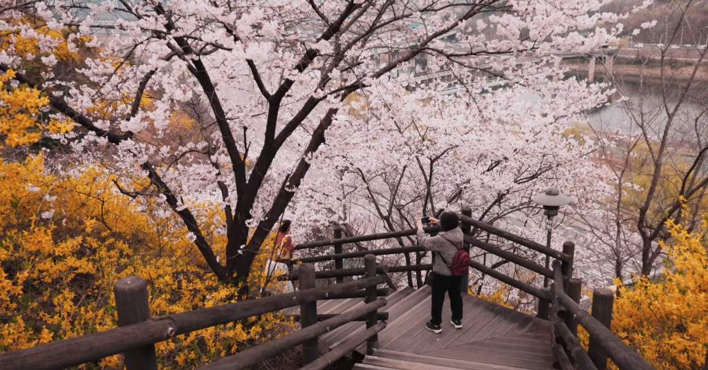 Mais Eungbongsan, c’est aussi une ambiance. Contrairement à d’autres lieux plus touristiques de la capitale, l’atmosphère y reste simple, presque intime. On y croise des étudiants, des retraités, des promeneurs du dimanche. Tous partagent, le temps d’une montée, ce même émerveillement face à une saison qui ne dure que quelques jours. Car ici réside peut-être le secret du lieu : sa fugacité. Les fleurs tombent aussi vite qu’elles apparaissent, emportées par le vent printanier. En une semaine, parfois moins, le paysage se transforme à nouveau, laissant derrière lui le souvenir d’un instant suspendu.