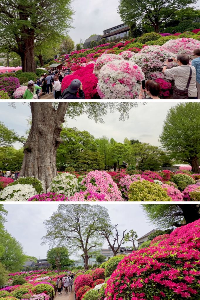 Sur les reliefs du jardin, près de 3 000 arbustes s’épanouissent en une palette de couleurs éclatantes. Les nuances se succèdent avec harmonie, du blanc au rose, du rouge au violet, composant un paysage presque irréel. Cette floraison spectaculaire est célébrée lors du festival des azalées, un événement attendu qui marque l’arrivée du printemps et compte parmi les rendez-vous saisonniers les plus appréciés de la capitale japonaise.