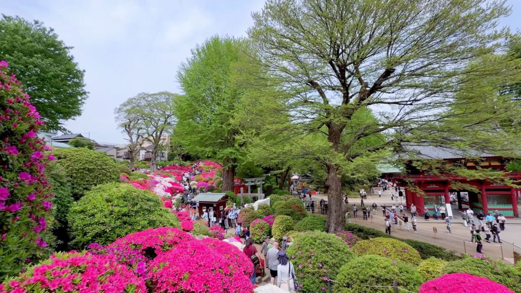 Au cœur de Tokyo, loin de l’agitation incessante de la ville, le sanctuaire Nezu offre chaque printemps un décor d’une rare poésie. Situé dans le quartier de Bunkyō, ce lieu chargé d’histoire se transforme, d’avril à début mai, en un véritable jardin vivant où les azalées attirent autant les habitants que les visiteurs de passage.