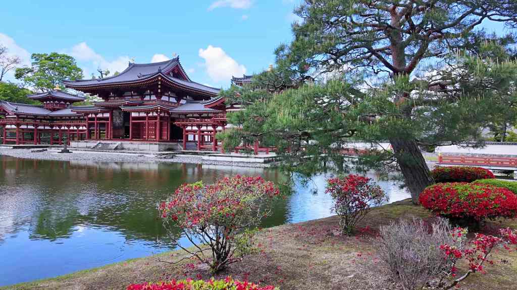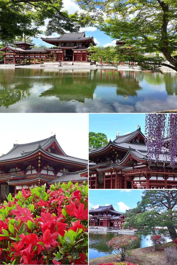 À quelques pas des rives paisibles de la rivière Uji, au cœur de la ville éponyme, se dresse le majestueux Byōdō-in. Classé au patrimoine mondial de l’UNESCO, ce temple emblématique de l’époque de Heian attire chaque année des visiteurs du monde entier. Si son pavillon du Phénix, délicatement posé au-dessus d’un étang miroitant, incarne à lui seul l’élégance japonaise, un autre trésor naturel y captive les regards au printemps : la glycine.